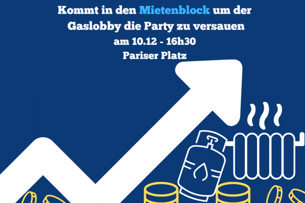 Während 300.000 Menschen in Berlin ihre Heizkosten fast nicht mehr bezahlen können, dreht die Bundesregierung mit Energiekonzernen im Hotel Adlon weiter an der Gaspreisspirale. Gas ist sowohl Kostenfalle für Mieter*innen als auch Klimakiller. Es soll weiterhin genutzt werden, um unsere Wohnungen zu heizen, obwohl es langfristig immer teurer wird. So steigen die Nebenkosten, die zweite Miete wird in die Höhe getrieben.
