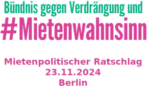 Save the Date – Mietenpolitischer Ratschlag, Teil 2 – 25.01.2025