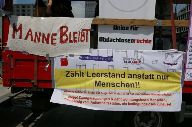 Für die Beendigung der Obdachlosigkeit. Gegen Zwangsräumungen.