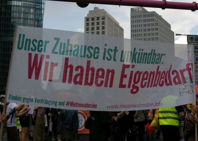 Zur Demonstration am Samstag, den 01. 06. um 13 Uhr ab Potsdamer Platz, rufen wir alle außerparlamentarische Gruppen und Einzelpersonen auf, die unseren Aufruf unterstützen. Wir wollen gemeinsam in einem breiten gesellschaftlichen Zusammenschluss auf die Straße gehen, denn unsere mietenpolitischen Themen gehen alle Menschen an, denen ein solidarisches Miteinander in der Stadt wichtig ist.