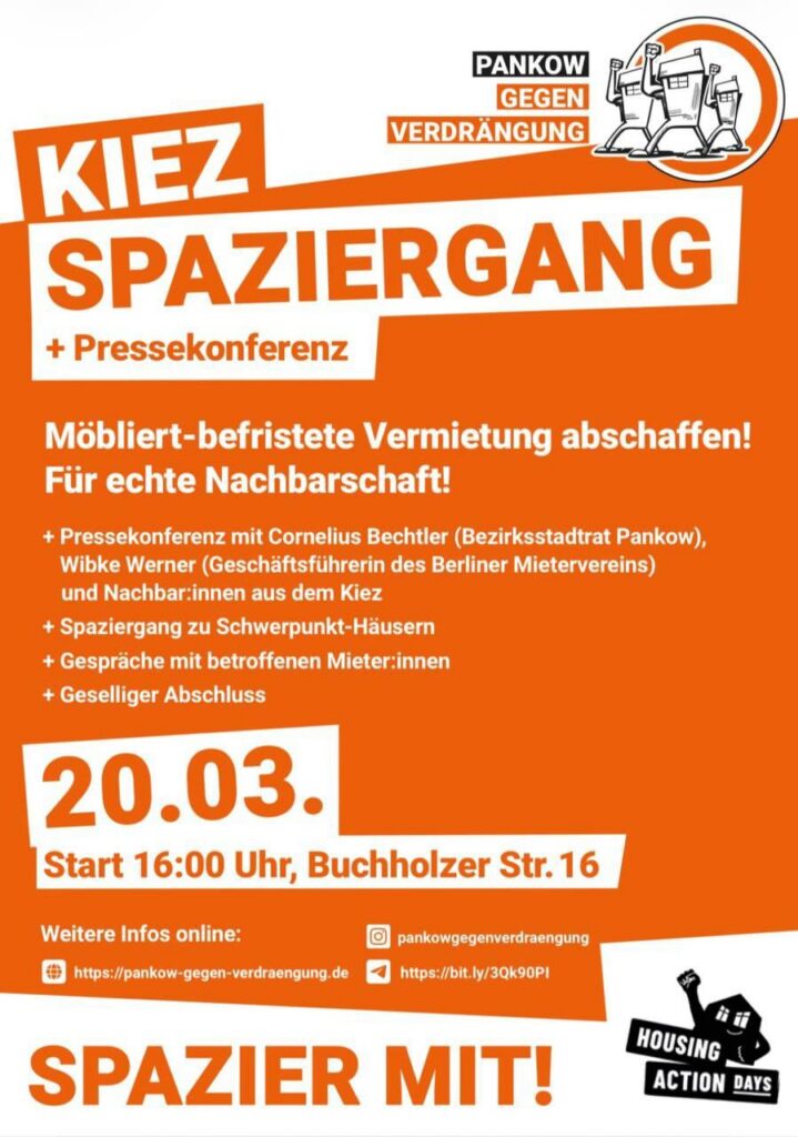 - Bereits vorab: Freitag, 20. März um 16 Uhr: Pressekonferenz und Kiezspaziergang durch den Prenzlauer Berg, Start: Bucholzer Straße 16
